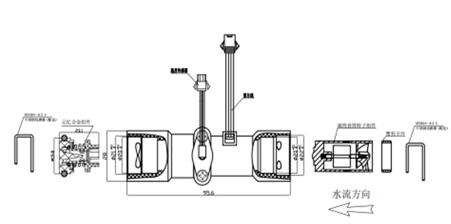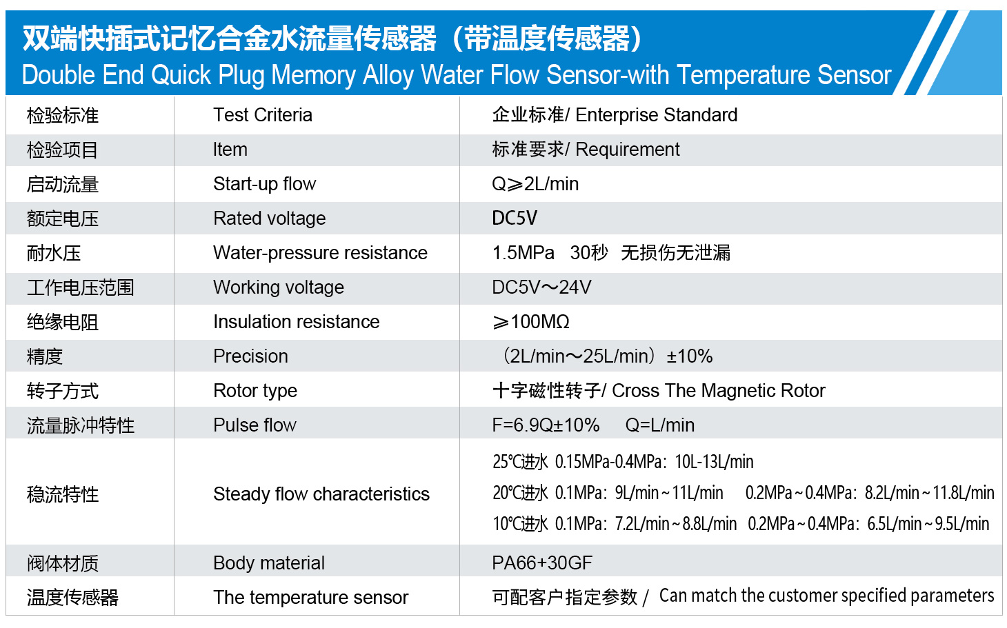 双端快插式记忆合金水流量传感器(带温度传感器)