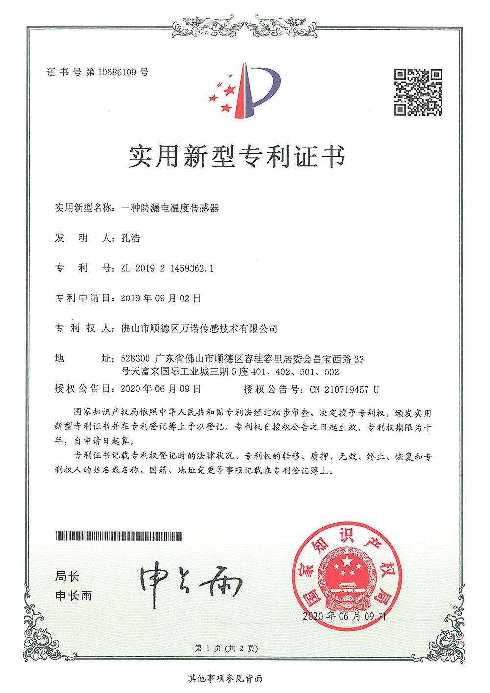专利证书